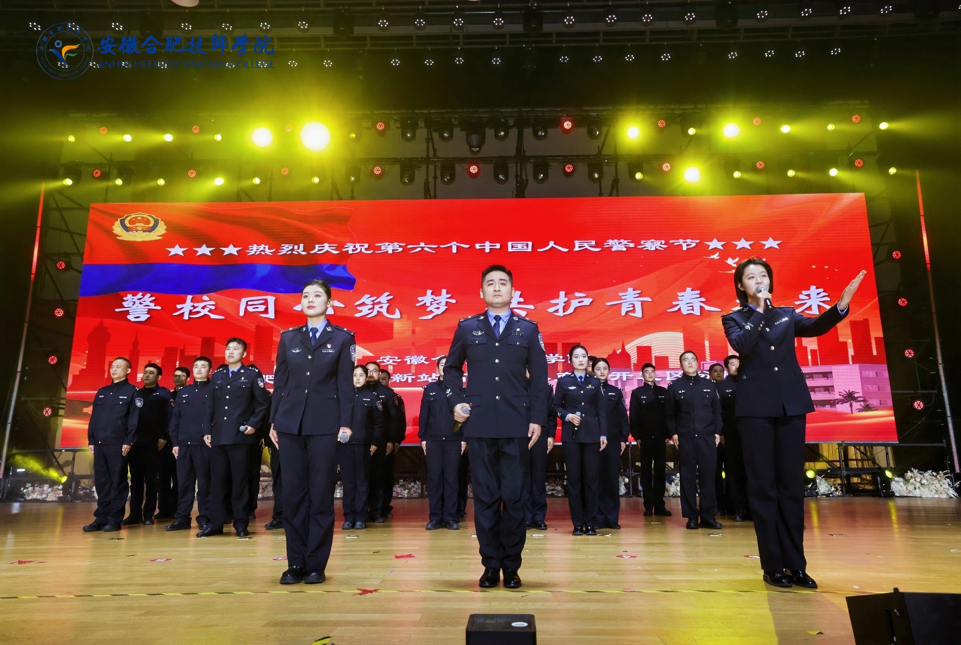 本次联欢会以”技能报国启新程 警校企社共迎春“为主题,通过丰富多彩的文艺形式,集中展现了学院师生昂扬向上的精神风貌与扎实精湛的专业技能,生动诠释了警校共建、校企融合、协同育人的丰硕成果。活动在《大家一起喜洋洋》与《夜鱼龙舞》的喜庆暖场表演中正式拉开帷幕。
